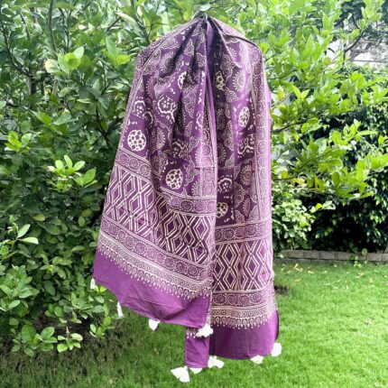 Handblock printed Cotton Stole_Violet