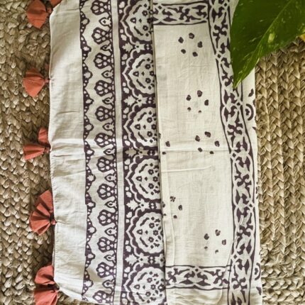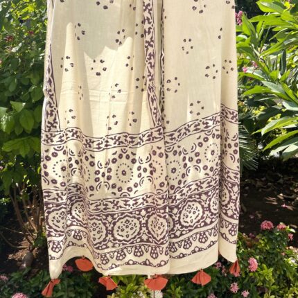Handblock printed Cotton Stole_Off White with Dark Purple