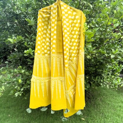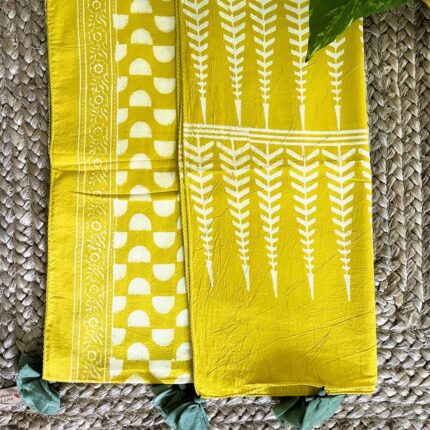 Handblock printed Cotton Stole_Lime Yellow