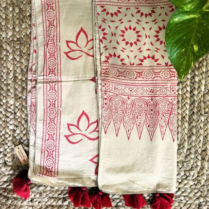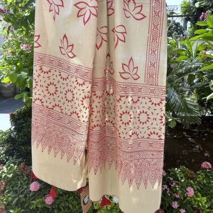 Handblock printed Cotton Stole_Beige with Red