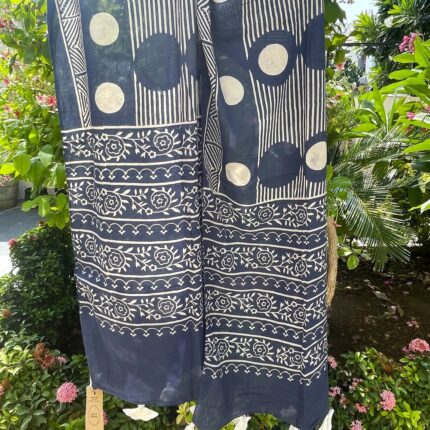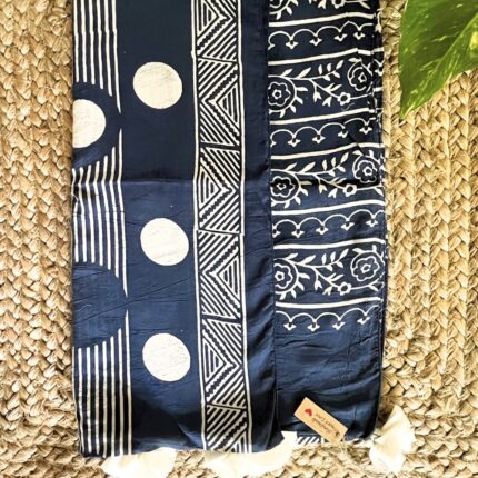 Handblock printed Cotton Stole_Navy Blue