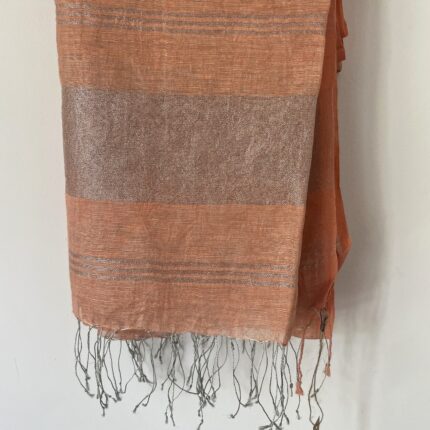Linen Dupatta_Peach with Silver Zari