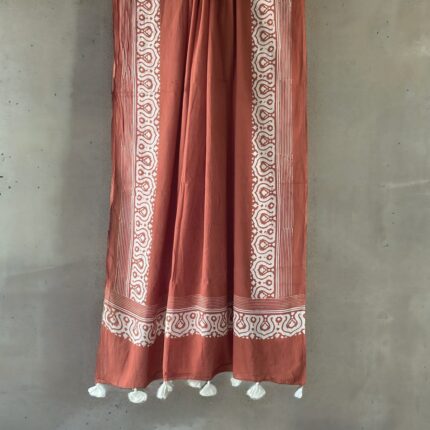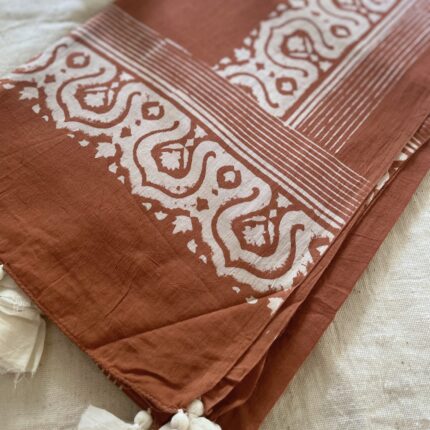 Handblock printed Cotton Dupatta_Rust