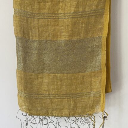 Linen Dupatta_Yellow with Silver Zari