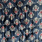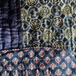 Ajrakh Block Printing: Our quilts showcase the age-old tradition of Ajrakh, a revered technique of vegetable dyeing and resist block-printing on cloth. This art form, which originated in Kutch, dates back nearly 4,500 years and is predominantly practiced by the Khatri community of Kutch and Sikh.