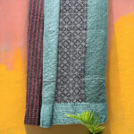 Ajrakh Block Printing: Our quilts showcase the age-old tradition of Ajrakh, a revered technique of vegetable dyeing and resist block-printing on cloth. This art form, which originated in Kutch, dates back nearly 4,500 years and is predominantly practiced by the Khatri community of Kutch and Sikh.
