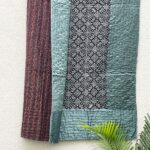 Elevate the ambiance of your bedroom with our exclusive reversible Ajrakh print and Tagai work Cotton quilts, a beautiful fusion of tradition and contemporary design. These versatile quilts, also known as “Godri” or “Gudri,” serve as both bed covers and blankets. Crafted with precision and love, they are designed with Ajrakh block printed Cotton fabric, featuring captivating patterns and colors. The distinct charm of these quilts lies in the intricate hand embroidery, using the traditional Kutchi craft technique of “Tagai”. These quilts are layered with Mashru Silk & Cotton fabric on either side ensuring comfort. Notably, they are reversible, allowing you to enjoy two distinct sides with their unique designs. Their multi-functionality makes them ideal as decorative bed covers, cozy blankets, or rustic sofa throws.